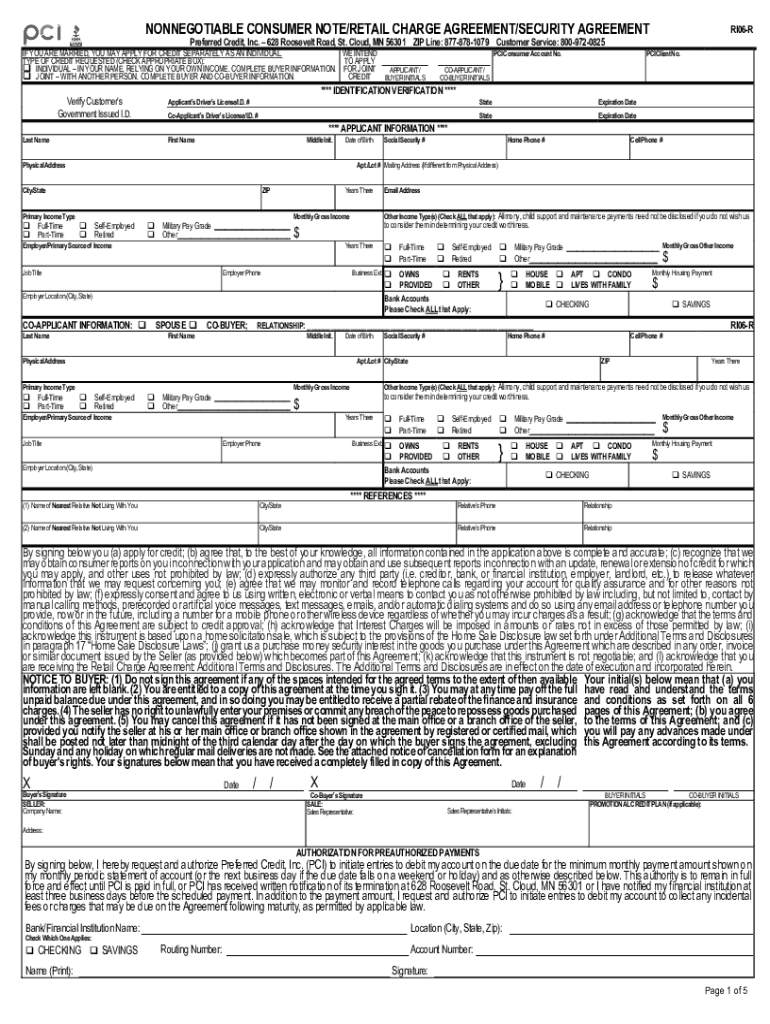NONNEGOTIABLE CONSUMER NOTE/RETAIL CHARGE AGREEMENT/SECURITY AGREEMENTRI06RPreferred Credit, Inc. 628 Roosevelt Road, St. Cloud, MN 56301 ZIP Line: 8778781079 Customer Service: 8009720825IF YOU ARE