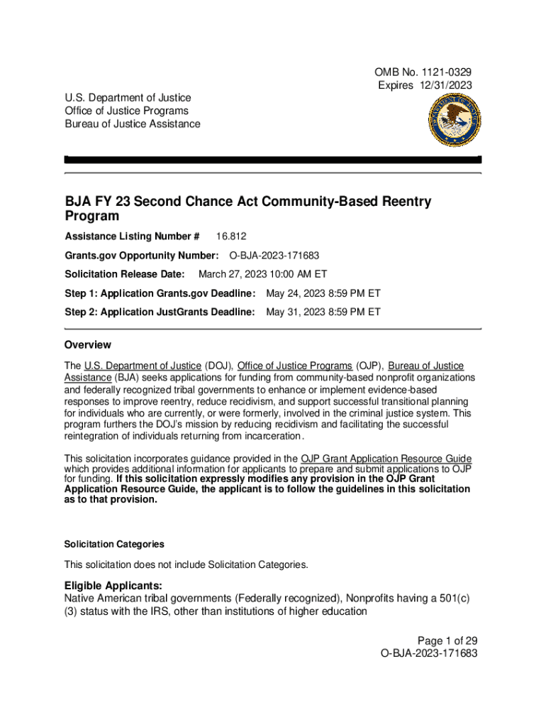 Bureau of Justice Assistance FY 23 Second Chance Act CommunityBased Reentry