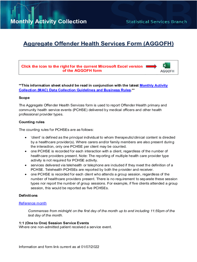 Monthly Activity CollectionAggregate Offender Health Services Form (AGO)Click the icon to the right for the current Microsoft Excel version of the AGO form**This information sheet should be read in