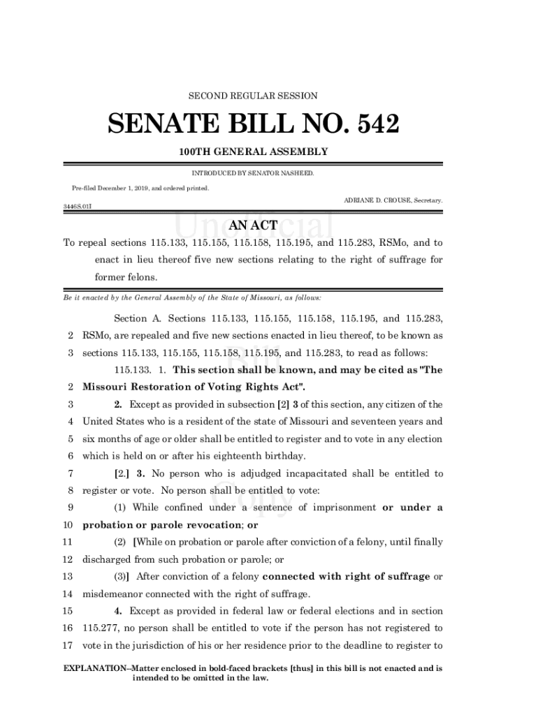 SECOND REGULAR SESSIONSENATE BILL NO. 542 100TH GENERAL ASSEMBLY INTRODUCED BY SENATOR RASHEED. Prefixed December 1, 2019, and ordered printed. ADRIANE D. GROUSE, Secretary. 3446S.01IAN ACT To repeal