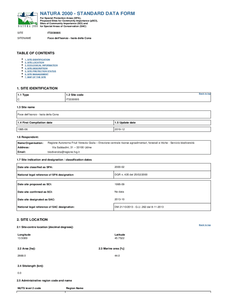 NATURAL 2000 STANDARD DATA FORM For Special Protection Areas (SPA), Proposed Sites for Community Importance (PCI), Sites of Community Importance (SCI) and for Special Areas of Conservation (SAC)SITEIT3330005SITENAMEFoce