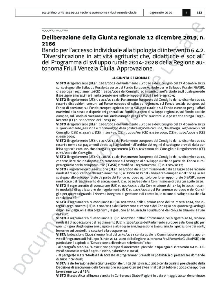 Ebollettino official Della region autonomy frills Venetian giulia20_1_1_DR_2166_1_TESTODeliberazione Della Giant regional 12 December 2019,