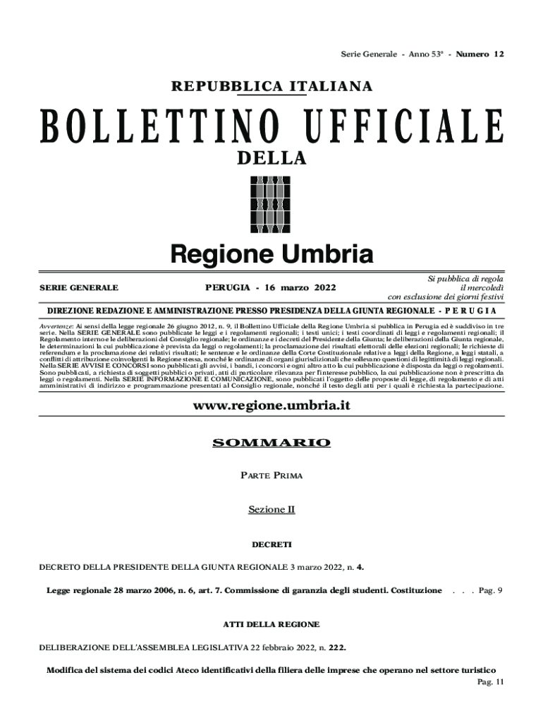 Ottieni il gratuito BUR Umbria - Serie Generale - n. 12