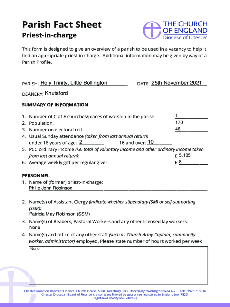PriestinchargeDiocese of Chesterton form is designed to give an overview of a parish to be used in a vacancy to help it