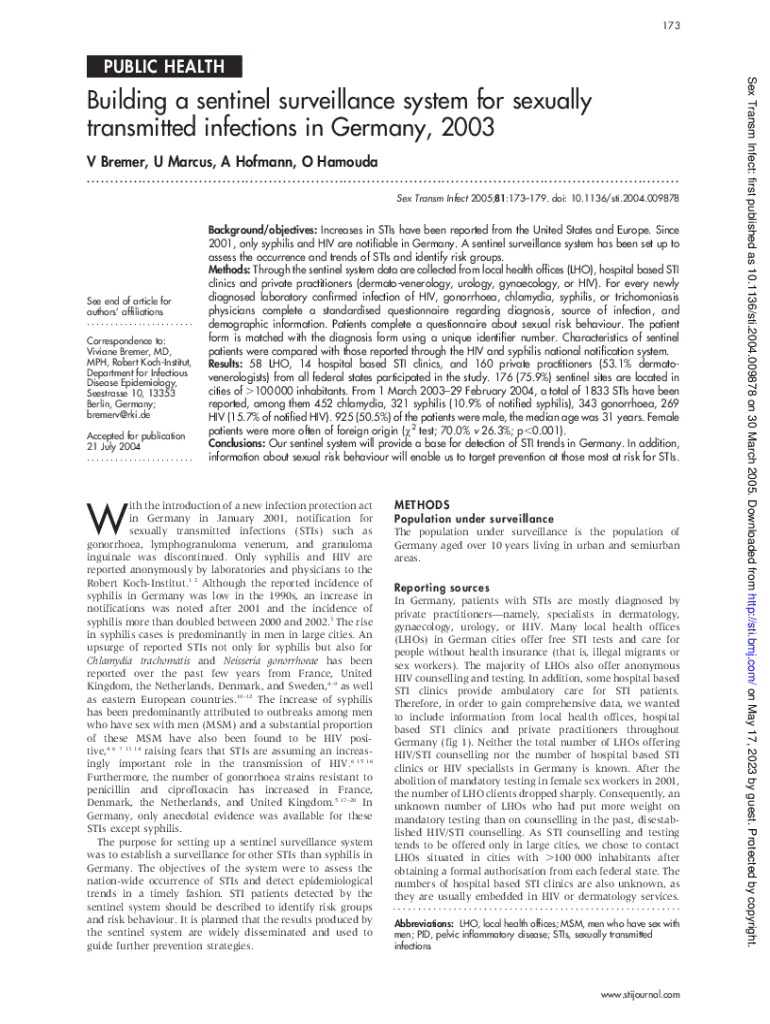 Get the free Building a sentinel surveillance system for sexually ...