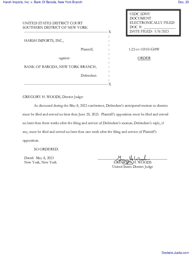 Harsh Imports, Inc. v. Bank Of Baroda, New York Branch. 23UNITED STATES DISTRICT COURT