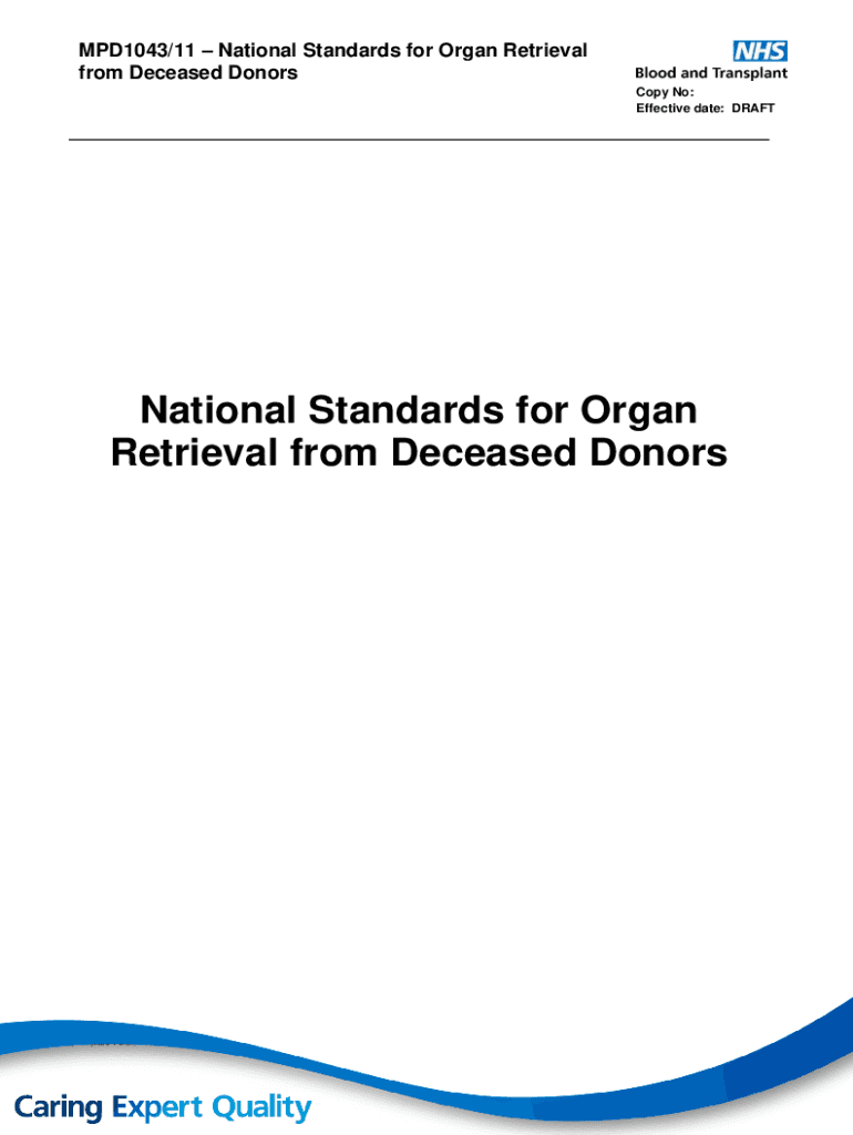 MPD1043/11 National Standards for Organ Retrieval from Deceased Donors Copy No: Effective date: Transnational Standards for Organ Retrieval from Deceased DonorsControlled if copy number stated on