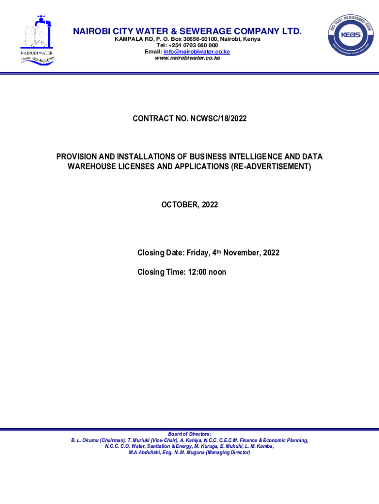 www.nairobiwater.co.keCONTRACT NO. NC WSC/18/2022PROVISION