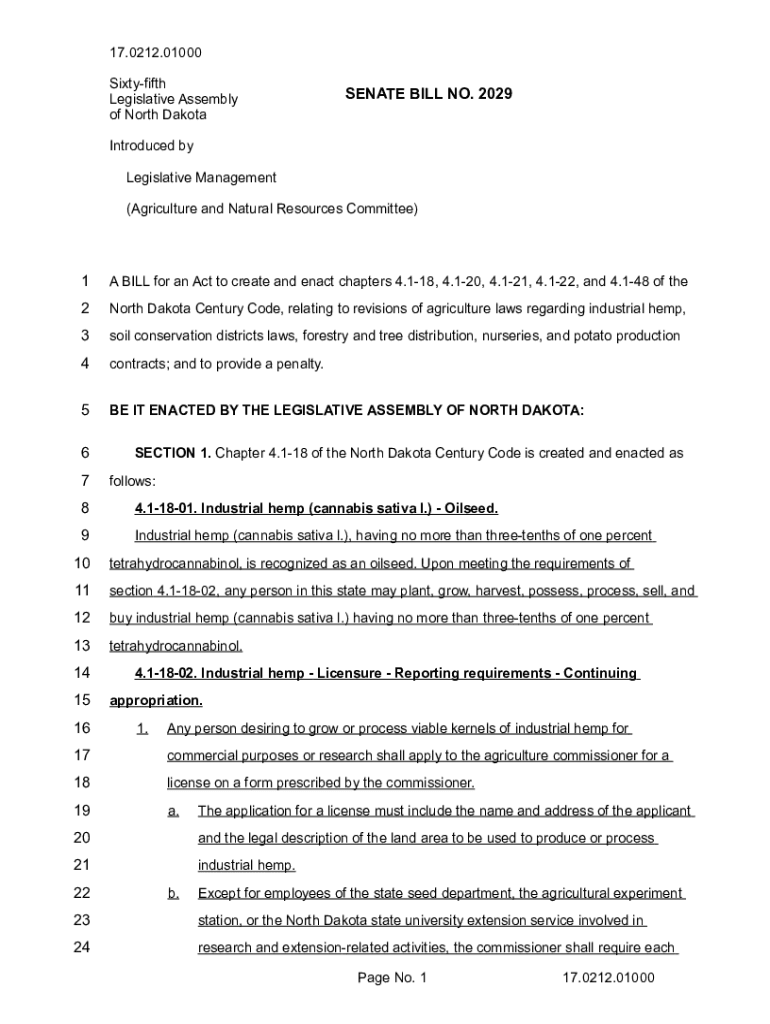 17.0212.01000 Sixty fifth Legislative Assemblies of North DakotaSENATE BILL NO. 2029Introduced by Legislative Management (Agriculture and Natural Resources Committee)1A BILL for an Act to create and