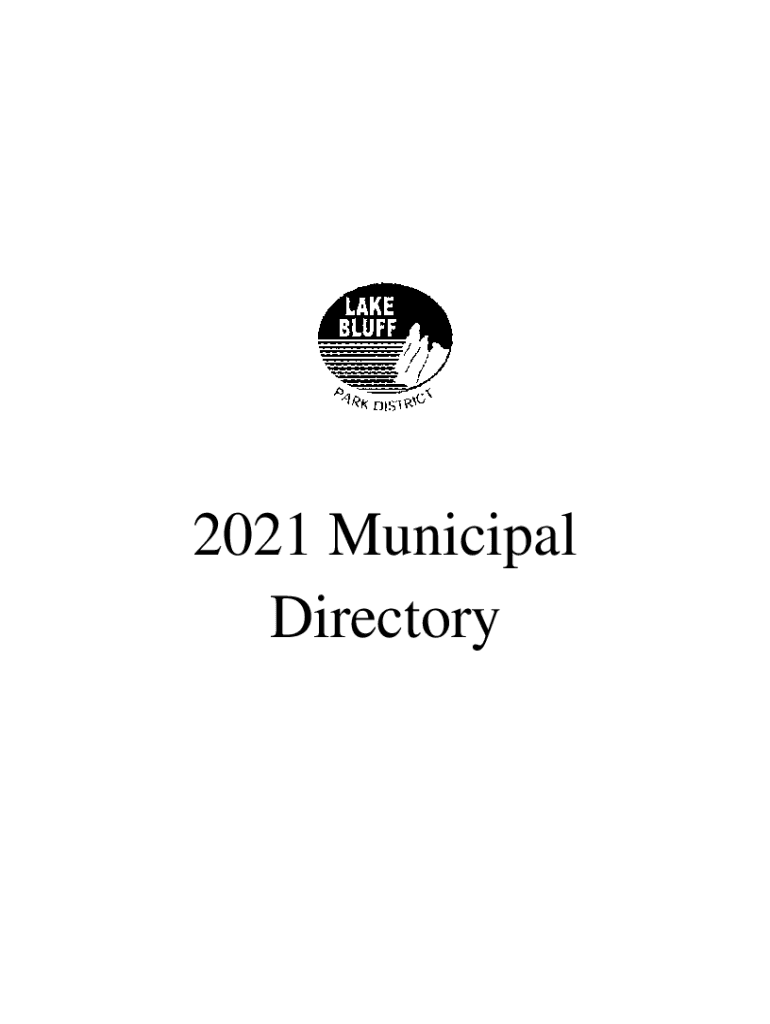 2021 Municipal Directorate BLUFF PARK DISTRICT 355 W. Washington Avenue, Lake Bluff, IL 60044 Telephone: 8472344150 Fax: 8472347275 Website: www.lakebluffparks.org F.O.I.A. Freedom of Information