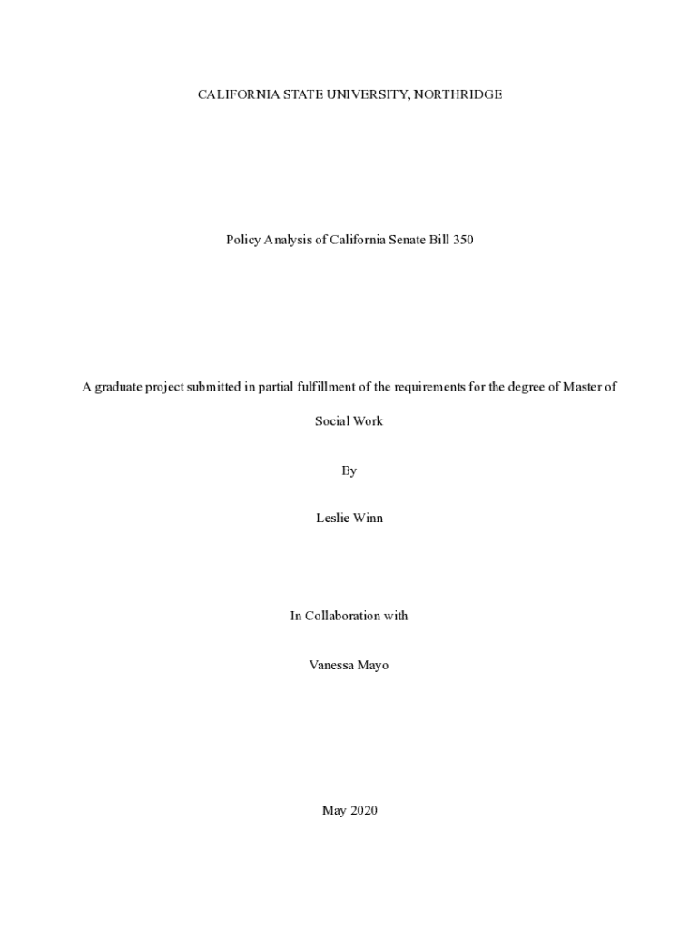 CALIFORNIA STATE UNIVERSITY, NORTHRIDGEPolicy Analysis of California Senate Bill 350A graduate project submitted in partial fulfillment of the requirements for the degree of Master of Social Work