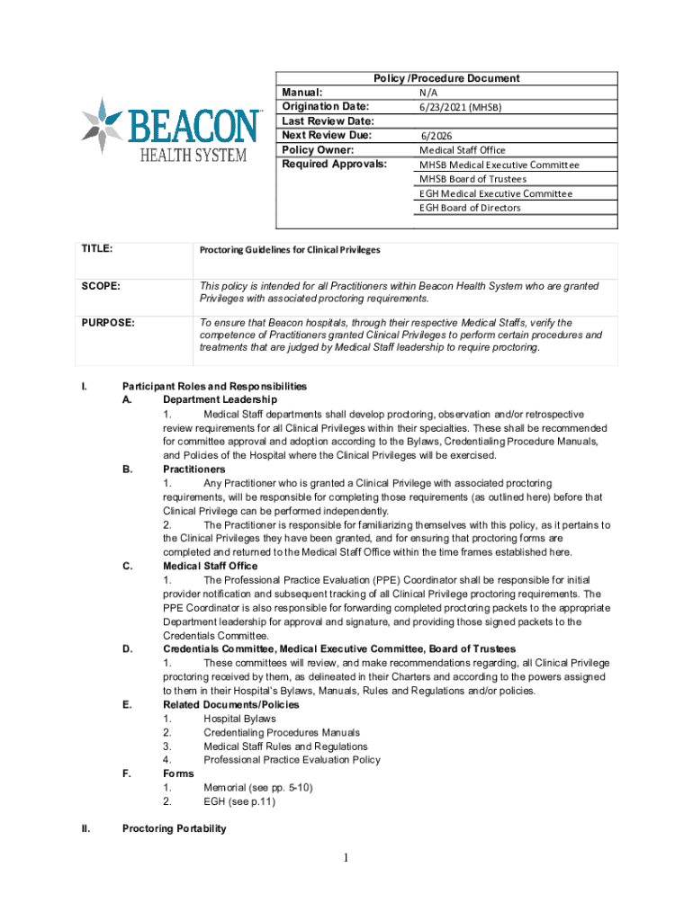 Policy /Procedure Document Manual: N/A Origination Date: 6/23/2021 (MHSC) Last Review Date: Next Review Due: 6/2026 Policy Owner: Medical Staff Office Required Approvals: MHSC Medical Executive Committee
