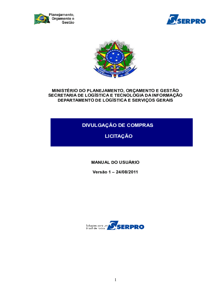 MINISTRY DO PLANEJAMENTO, ORNAMENTS E GUSTO SECRETARIAT DE LOGISTICS E TECHNOLOGY DA INFORMAL DEPARTMENT DE LOGISTICS E SERVOS GERAISDIVULGAO DE COM PRAS LICITAOMANUAL DO USU RIO Verso 1 24/08/20111Sumrio