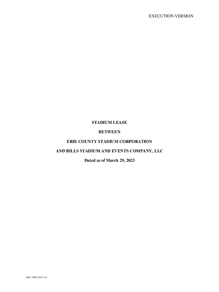 EXECUTION VERSIONSTADIUM LEASE BETWEEN ERIE COUNTY STADIUM CORPORATION AND BILLS STADIUM AND EVENTS COMPANY, LLC Dated as of March 29, 2023488770984747v.24TABLE OF CONTENTS Page ARTICLE 1 BASIC LEASE