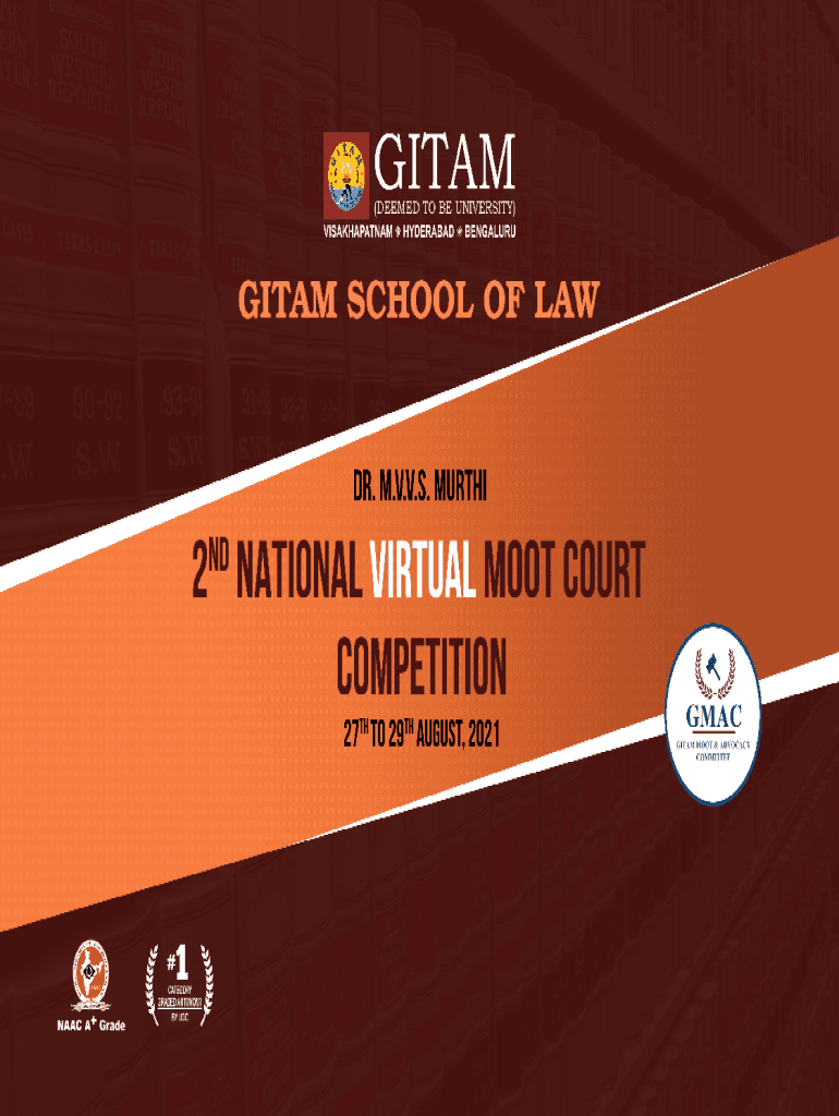 GI TAM SCHOOL OF LAW Dr. MVVM MULTI 2ND NATIONAL VIRTUAL MOOT COURT COMPETITION 27th to 29th August, 2021VENUE: GI TAM SCHOOL OF LAW GI TAM (Deemed to be University) Gandhi Nagar Campus, Rushikonda
