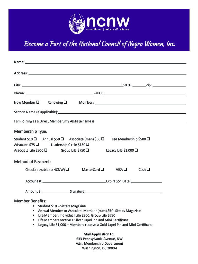 Get the free Membership FormNational Council of Negro Women, Inc.