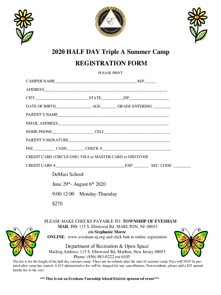 Summer Camp Registration Forms is not the form you're looking for?Search for another form here.