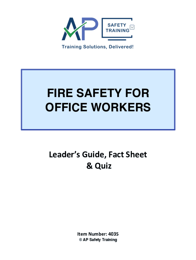 FIRE SAFETY FOR OFFICE WORKERSLeaders Guide, Fact Sheet & Quite Number: 4035 AP Safety Trainings espouse Leaders Guide is provided to assist in conducting a successful presentation. PREPARING FOR