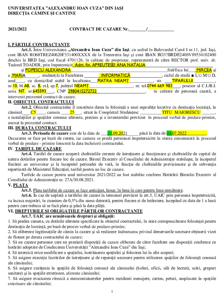 Students and faculty members of Universitatea Alexandru Ioan Cuza are required to file necessary paperwork and reports.