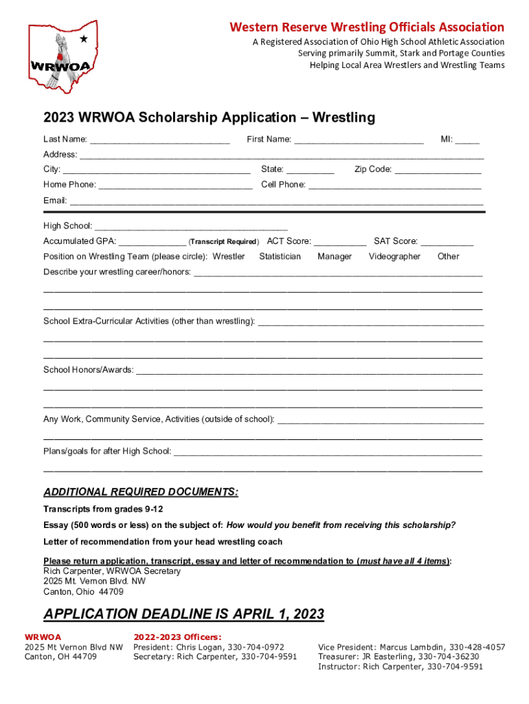 Get the free THE WRWOA 25th ANNUAL REFEREE & OHIO YOUTH ...