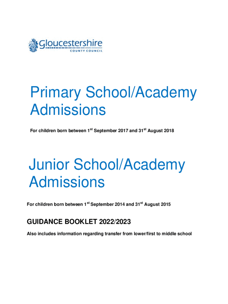 Primary School/Academy Admissions For children born between 1st September 2017 and 31st August 2018Junior School/Academy Admissions For children born between 1st September 2014 and 31st August 2015GUIDANCE