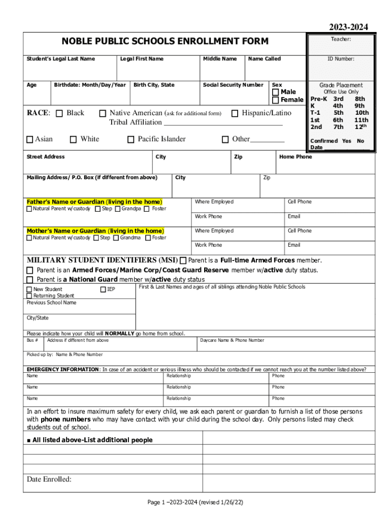 NOBLE PUBLIC SCHOOLS ENROLLMENT FORM