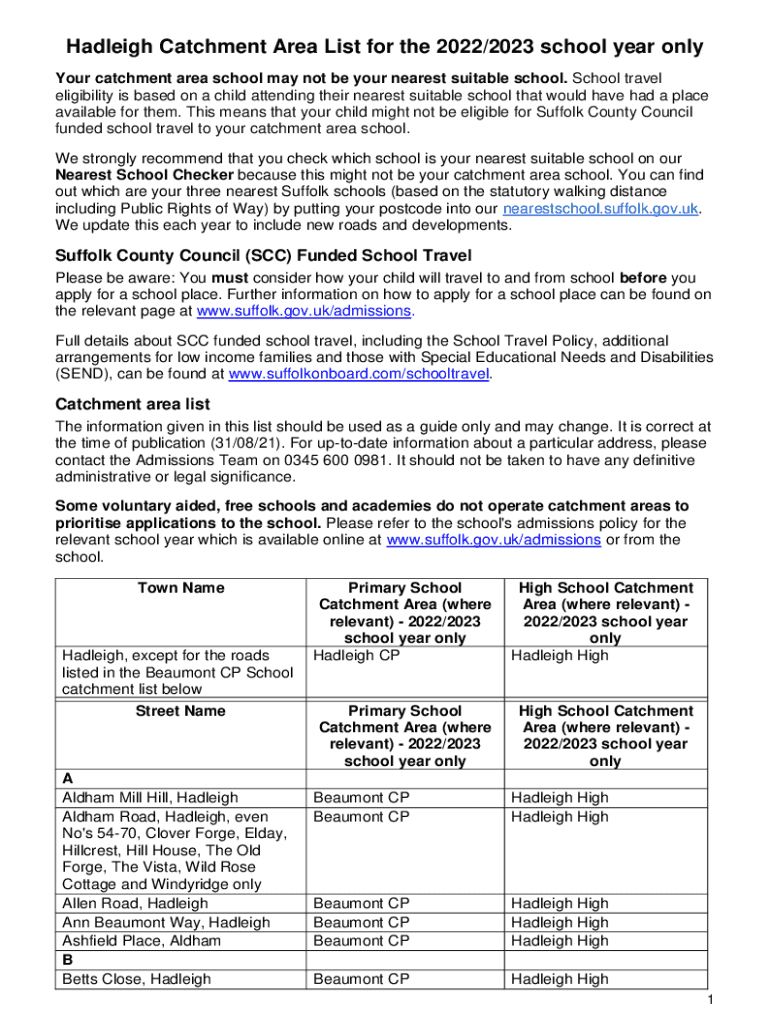 Raleigh Catchment Area List for the 2022/2023 school year only Your catchment area school may not be your nearest suitable school. School travel eligibility is based on a child attending their nearest