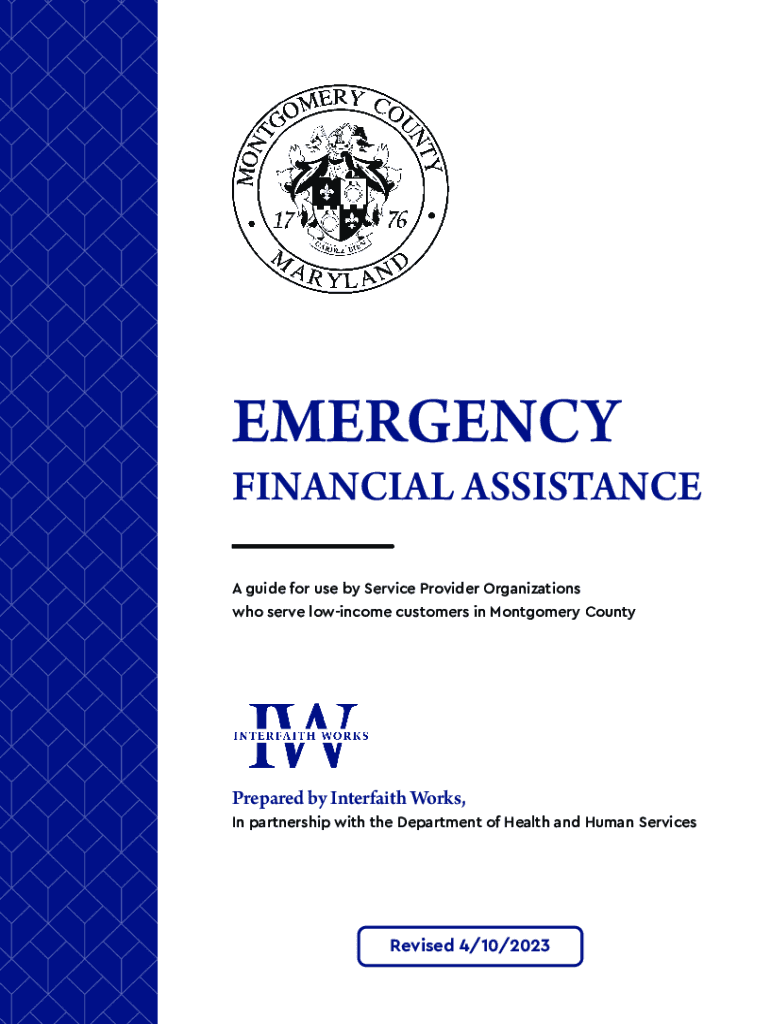 EMERGENCYFINANCIAL ASSISTANCE A guide for use by Service Provider Organizations who serve low income customers in Montgomery CountyPrepared by Interfaith Works, In partnership with the Department