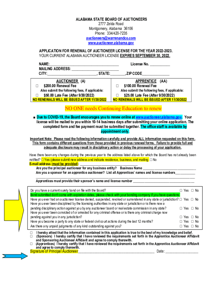 Get the free Auctioneer License Renewal Form for 2017-18 (00181834.DOC;1) - auctioneer alabama