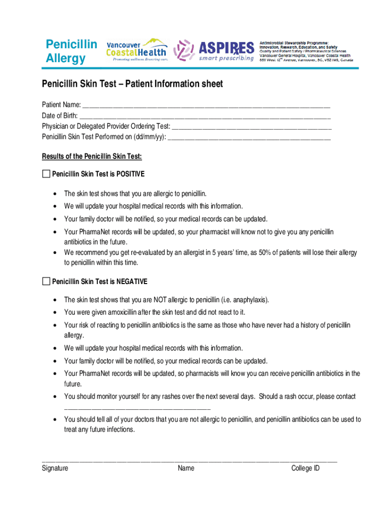 Allergy Skin Test Patient Information sheet Patient Name: ___ Date of Birth: ___ Physician or Delegated Provider Ordering Test: ___ Skin Test Performed on (dd/mm/by): ___ Results of the Skin Test: