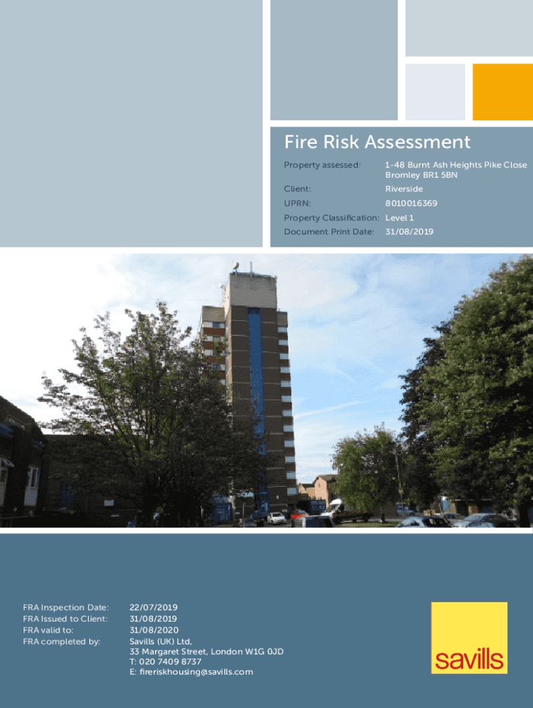 Fire Risk Assessment Property assessed:148 Burnt Ash Heights Pike Close Bradley BR1 5BNClient:RiversideUPRN:8010016369Property Classification: Level 1 Document Print Date:FRA Inspection Date: FRA