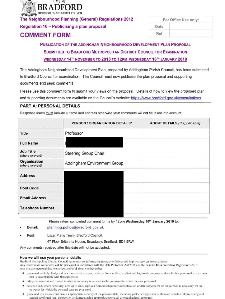The Neighborhood Planning (General) Regulations 2012For Office Use only:Regulation 16 Publicizing a plan proposalDateCOMMENT FORMRefPUBLICATION OF THE ADDING Neighborhood DEVELOPMENT PLAN PROPOSAL