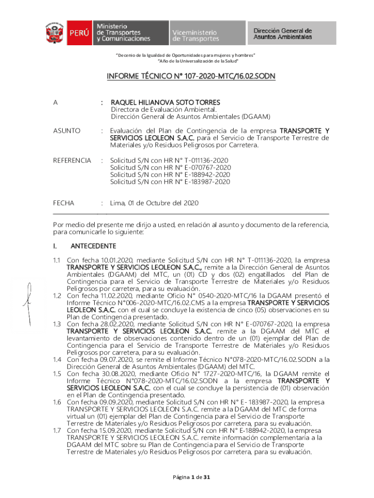 AO de la Universalization DE la Salad\” INFORMED TCN ICO N 1072020MTC/16.02.SON