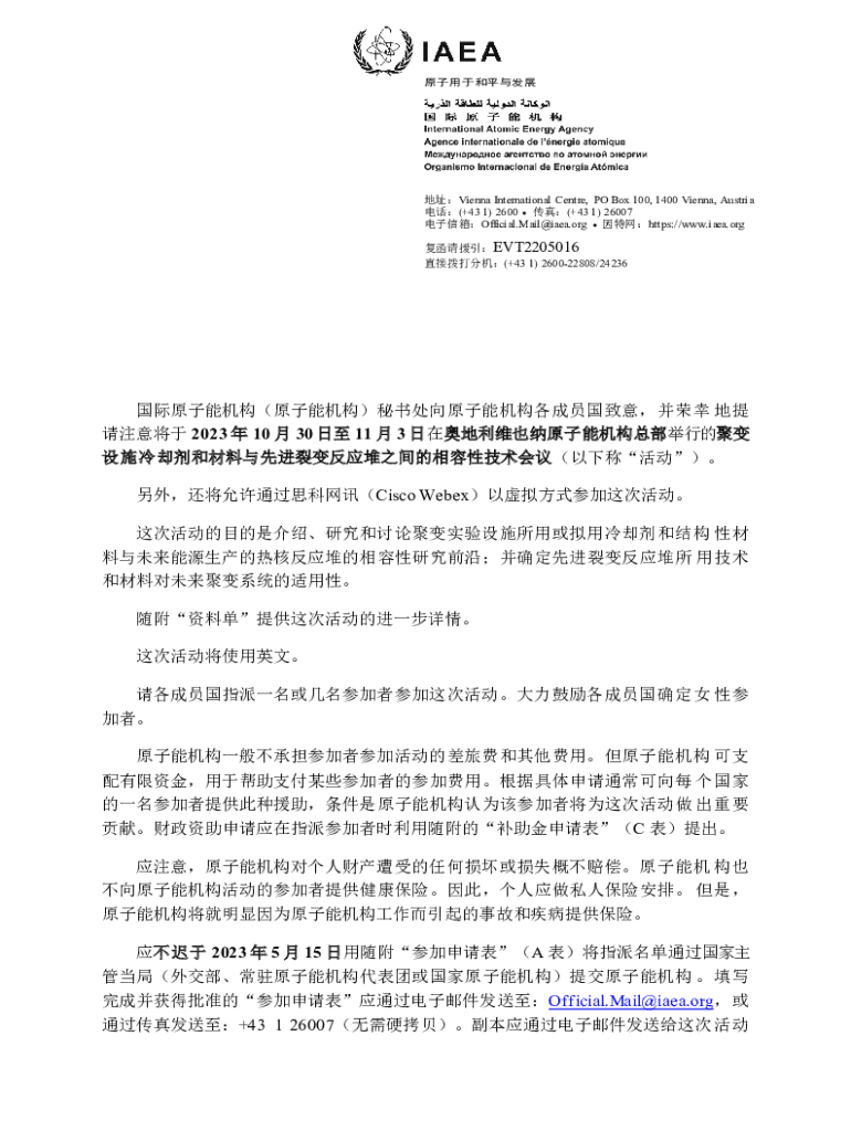 Vienna International Center, PO Box 100, 1400 Vienna, Austria (+43 1) 2600 (+43 1) 26007 Official.Mail@iaea.org https://www.iaea.org EVT2205016 (+43 1) 260022808/24236 2023 10 30 11 3