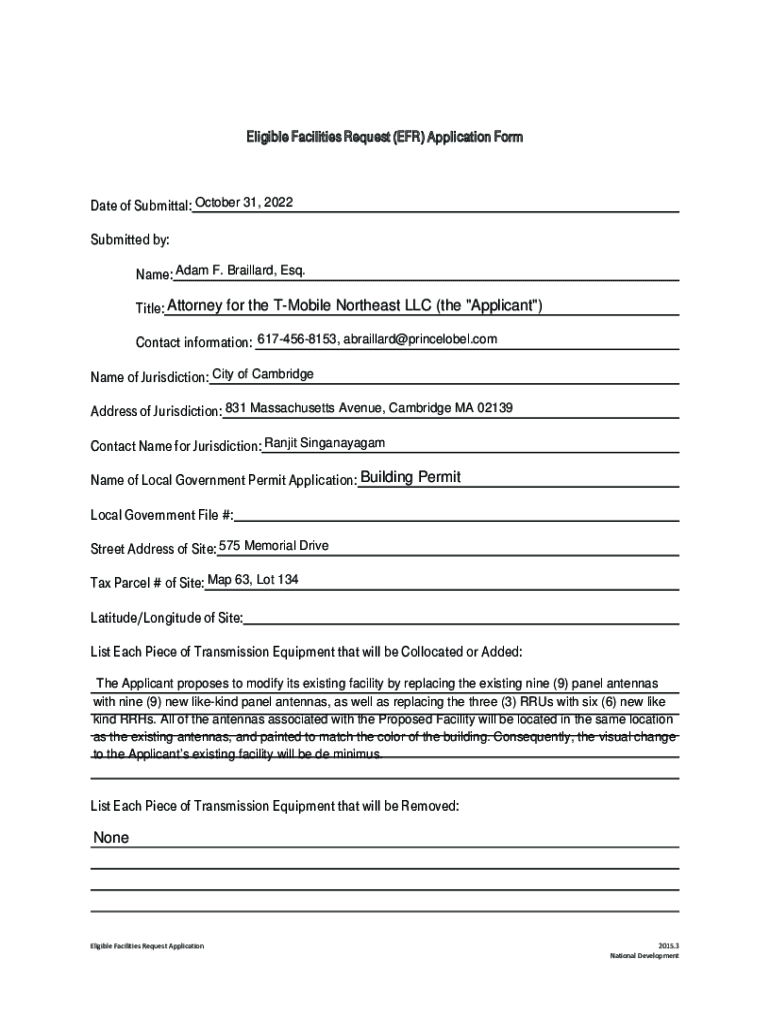 CITY OF CAMBRIDGE BOARD OF ZONING APPEAL 831 Massachusetts Avenue, Cambridge MA 02139.6173496100BZA Application Form....::BZA Number: 200775 General Information The undersigned hereby petitions the