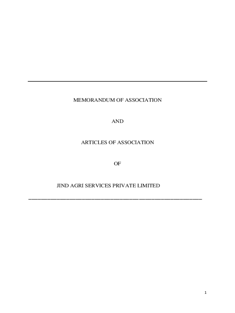MEMORANDUM OF ASSOCIATIONANDARTICLES OF ASSOCIATIONOFJIND AGRA SERVICES PRIVATE LIMITED___1THE COMPANIES ACT, 2013