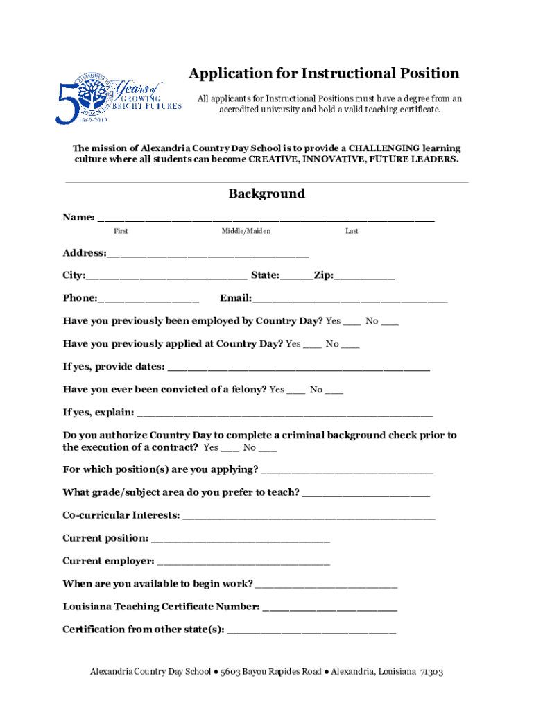 Get the free Application for Instructional Position