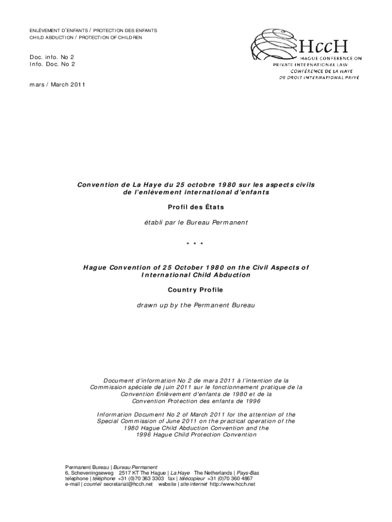 ELEMENT TENANTS CHILD ABDUCTION/ PROTECTION DES INFANTS / PROTECTION OF Children. Info. No 2 Info. Doc. No 2 mars / March 2011Convention de La Have Du 25 October 1980 SUR LES aspects civil DE element