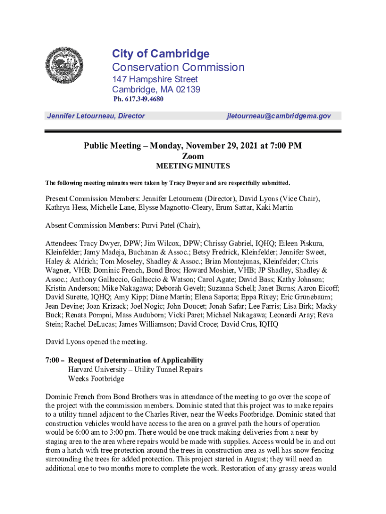 pH. 617.349.4680Jennifer Letourneau, Directorjletourneau@cambridgema.govPublic Meeting Monday, November 29, 2021,