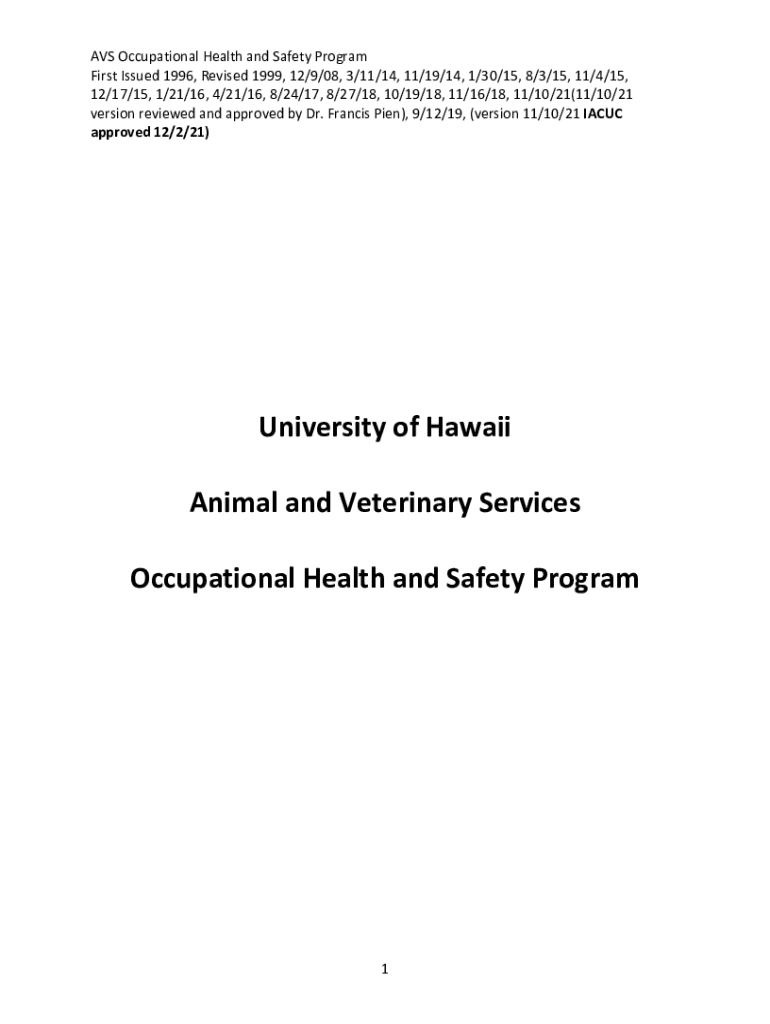 AVS Occupational Health and Safety Program First Issued 1996, Revised 1999, 12/9/08, 3/11/14, 11/19/14, 1/30/15, 8/3/15, 11/4/15, 12/17/15, 1/21/16, 4/21/16, 8/24/17, 8/27/18, 10/19/18, 11/16/18,