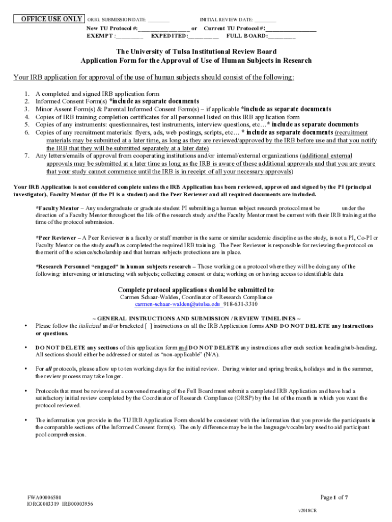 EXEMPT :___ EXPEDITED:___ FULL BOARD:___The University of Tulsa Institutional Review