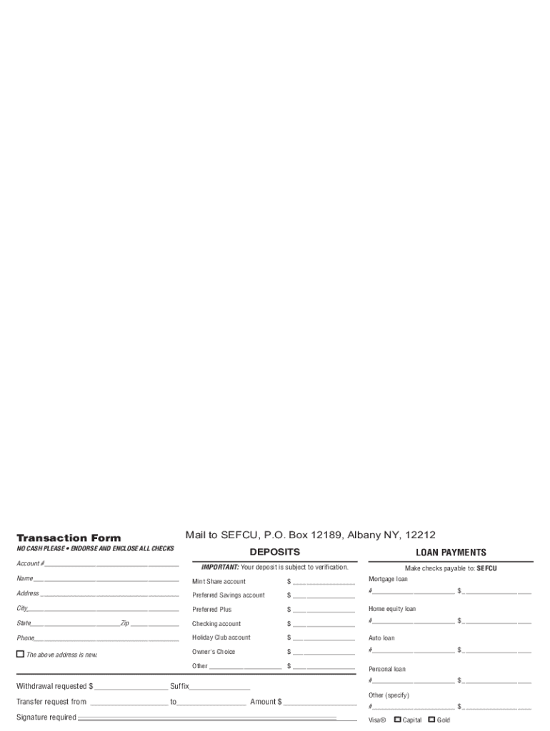and enclose it in this envelope. Transaction Formal to SECT, P.O. Box 12189, Albany NY, 12212NO CASH PLEASE ENDORSE AND ENCLOSE ALL CHECKS