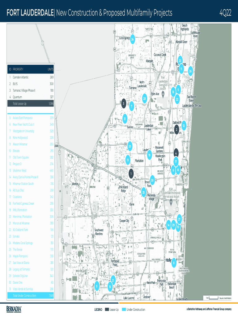FORT LAUDERDALE| New Construction & Proposed Multifamily Projects4Q222423 IDPROPERTY1Camden Atlantic2692BLYS3003Tamarac Village Phase II1904Quantum327Total LeaseUpAviara East Pompano2296New River