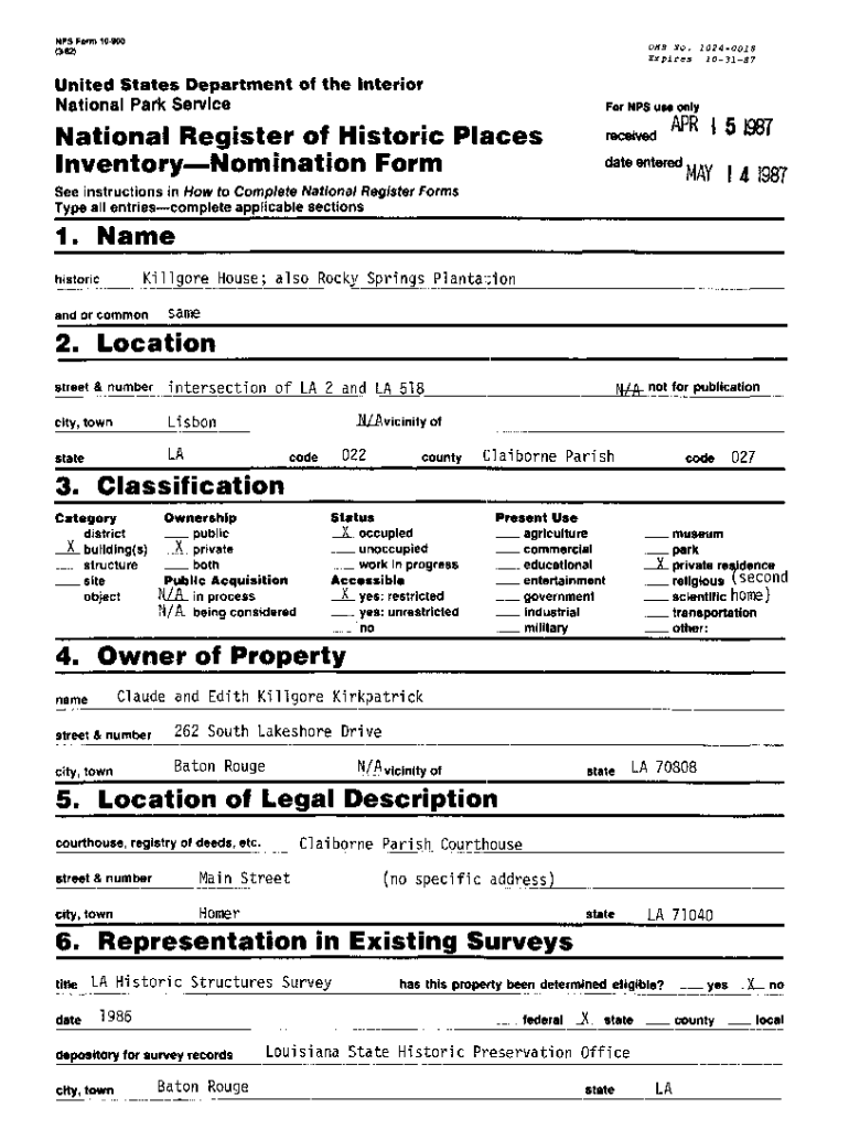 Expires 103187United States Department of the International Park ServiceNow NPS UM onlyNational Register of Historic Places