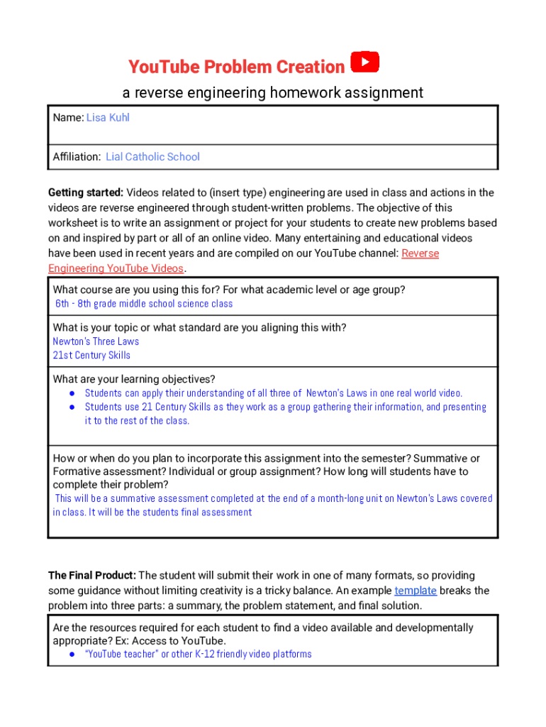 Newtons Laws Youtube Assignment is not the form you're looking for?Search for another form here.