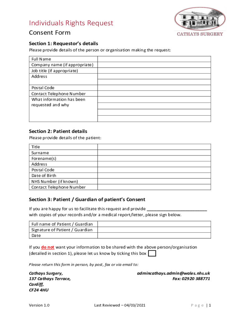 Get the free Individuals Rights Request - Consent Form