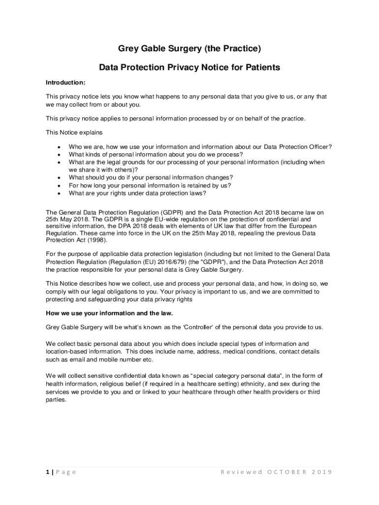 Get the free Grey Gable Surgery (the Practice) Data Protection Privacy Notice ...