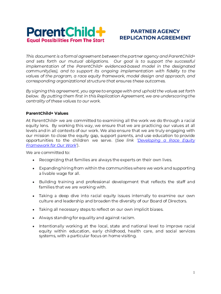 Edit your partner agency replication agreement form online