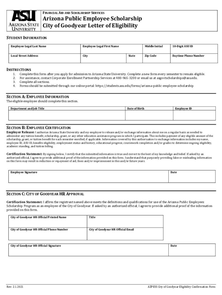 FINANCIAL AID AND SCHOLARSHIP SERVICES Arizona Public Employee Scholarship