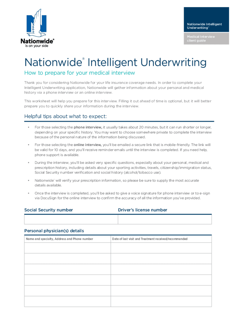 Nationwide Intelligent Underwriting Medical Interview client guide Nationwide Intelligent Underwriting How to prepare for your medical interview Thank you for considering Nationwide for your life